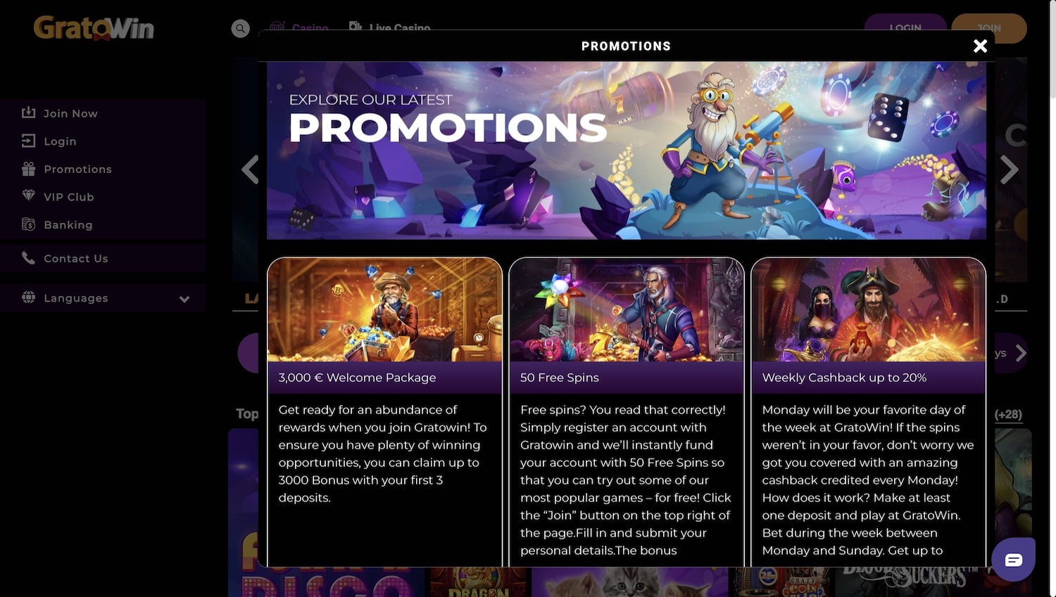 La piattaforma si è guadagnata una reputazione per l’ampio catalogo e la navigazione intuitiva, e molti giocatori scelgono il sito quando cercano un’esperienza moderna e amichevole. Sia per i principianti che per gli utenti esperti, Gratowin mira a integrare un’interfaccia intuitiva con un sistema di bonus accessibile e solidi partner software che garantiscono un’esperienza di gioco fluida su desktop e dispositivi mobili.